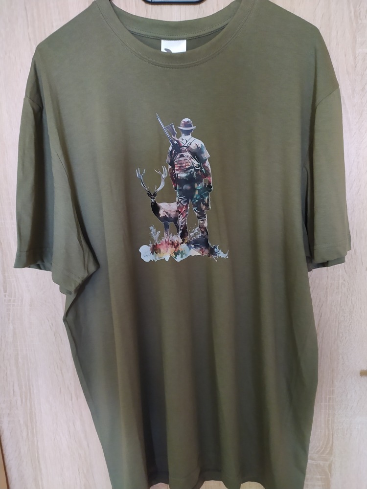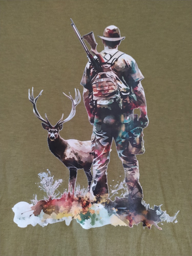 Triko pánské khaki "Lovec s jelenem"